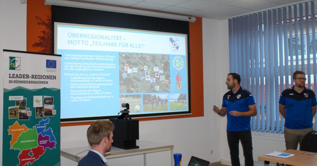 Der FC Auetal in Kalefeld erhält 125.000 € Förderung für einen Kunstrasenplatz. Die LAG hat das überregionale Interesse verschiedener Gruppen am Sportplatz überzeugt. Auch das Inklusionskonzept und die nachhaltige Ausführung mit Kork als Füllmaterial haben zu einem positiven Beschluss geführt.